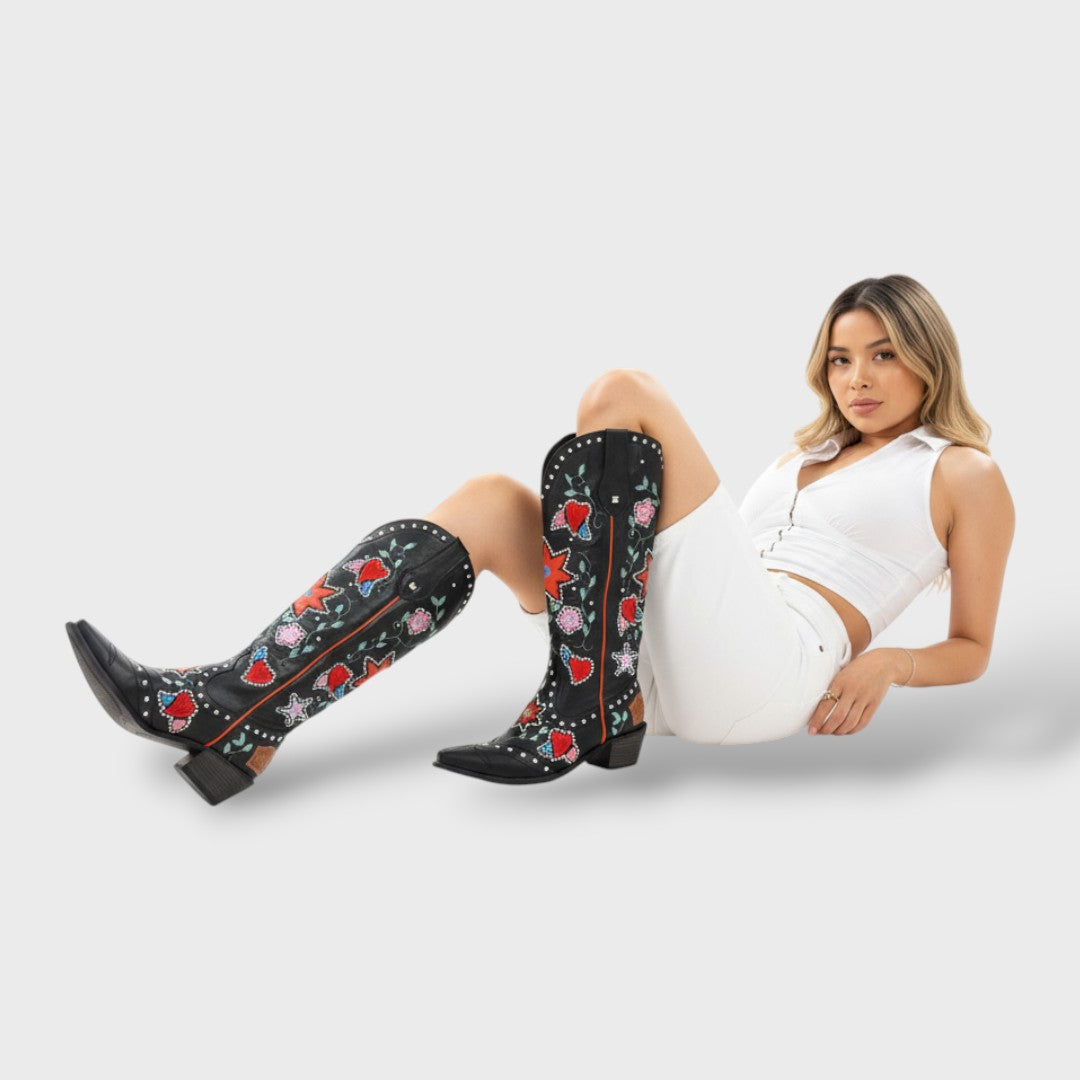 Botas Cowboy Mujer Bordadas Punta Fina