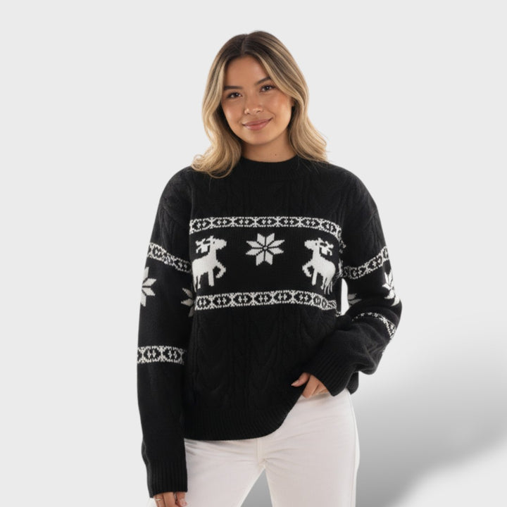 El Suéter Navideño de Cachemira con Ciervo captura la esencia de la temporada con un diseño cálido, moderno y lleno de encanto. Su textura suave y su confección de alta calidad ofrecen una sensación envolvente, perfecta para disfrutar de las fiestas con comodidad y elegancia. Ideal para reuniones familiares, cenas especiales o momentos de relax frente al fuego.