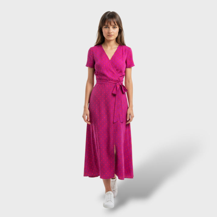 Este vestido con estampado floral de gala combina a la perfección elegancia, comodidad y estilo atemporal. Diseñado para realzar la silueta femenina con un ajuste impecable, su tejido ligero y suave acompaña cada movimiento con gracia y naturalidad. Ideal para eventos especiales o cenas elegantes, este vestido transmite lujo relajado y confianza absoluta.