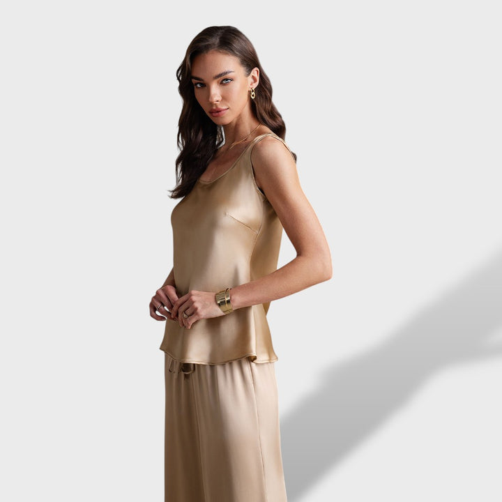 El conjunto Clara™ combina una camiseta ligera y sin mangas con pantalones de pierna ancha que aportan un estilo moderno y relajado. Su diseño fluido y transpirable asegura libertad de movimiento y frescura, convirtiéndolo en la elección perfecta para noches de descanso o momentos de relax en casa.
